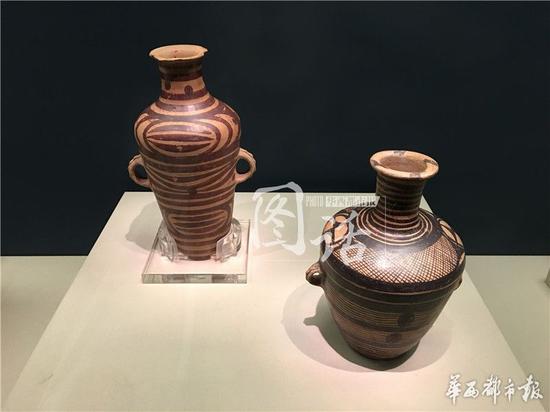 值得一提的是,本次展览不仅有来自黄河流域的史前彩陶,还有来自长江上游川西高原地区出土的六件彩陶,它们具有浓厚的仰韶文化或马家窑文化彩陶风格。