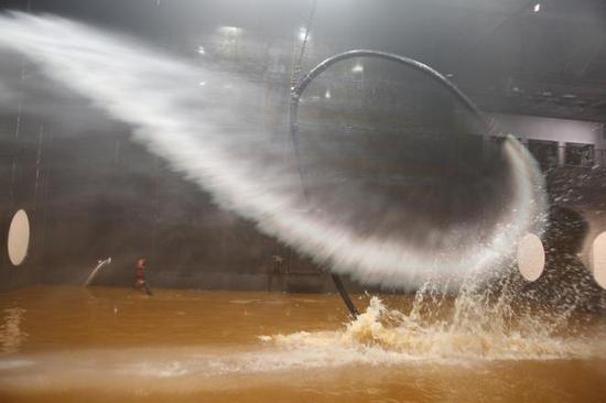 艺术家组合孙原&彭禹在纯净的白盒子展厅里,让一座8米高、长宽12米的40吨黑铁盒拔地而起!怪物一般的大铁盒内注水近百吨,高压水泵喷射出扬程180米的水柱,肆意捶打铁壁,将为沙漠观众带来独属《自由》的动人力量!