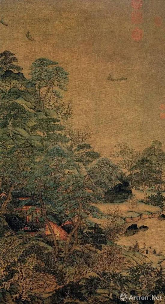 摘要: 现藏于台北故宫博物院的《江帆楼阁图》,立轴,绢本青绿设色,101.9x54.7cm。这幅画其实并非是李思训的真迹,而是宋代的摹本。《江帆楼阁图》无论从题材内容到技法的呈现方式,都是属于李思训流派,是一幅研究李派山水重要的作品。现藏于台北故宫博物院的《江帆楼阁图》,立轴,绢本青绿设色,101.9x54.7cm。这幅画其实并非是李思训的真迹,而是宋代的摹本。《江帆楼阁图》无论从题材内容到技法的呈现方式,都是属于李思训流派,是一幅研究李派山水重要的作品。