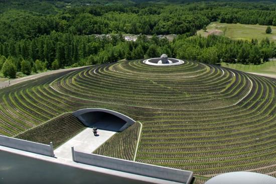 安藤将这次的工作归为一个景观建筑,整体外观随着一年时间的变化而改变。在春天和夏天,这座小山上都是翠绿的植物和充满活力的薰衣草,而在冬季则会披上厚厚的一层雪。