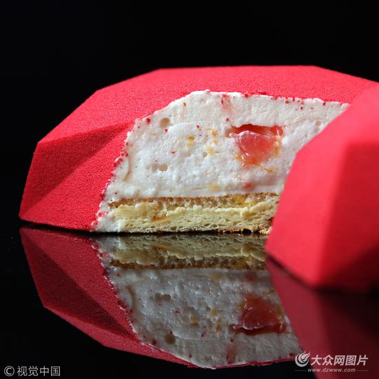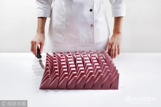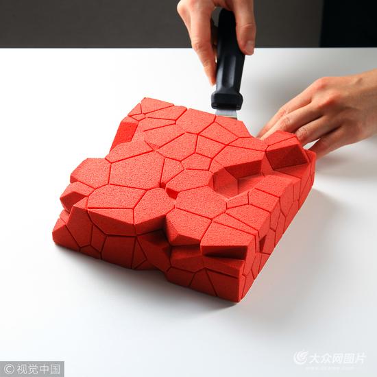 当地时间2017年10月23日,乌克兰基辅,Dinara Kasko是来自乌克兰的一名创意蛋糕烘焙师,她用3D建模软件创造出了一系列几何蛋糕,独具匠心,让人大呼不可思议!Dinara从前是一名建筑设计师,因为爱上了烘焙,她又去了专业学校学习,拿下了烘焙师证书。因为不想和别人一样做千篇一律的蛋糕,Dinara想到了利用自己的数学头脑,把蛋糕变成建筑艺术。并且,她真的做到了。