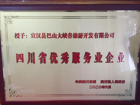 摘要: 近年来,该公司牢固真诚树立真诚服务理念,一切从游客实际出发,一切为了游客,创新服务方式,提高服务质量,景区呈现井喷式高质量发展态势,受到各级领导和社会各界的一致好评。2020年6月9日,四川省服务业发展大会在成都举行,宣汉县巴山大峡谷旅游开发有限公司被授予“四川省优秀服务业企业”,这是巴山大峡谷继2019年“最美中国文化旅游目的地”,2019年博鳌国际旅游年度景区奖,2019年度地球发现者大会年度网络人气奖、旅游创新营销等奖项后的又一殊荣。