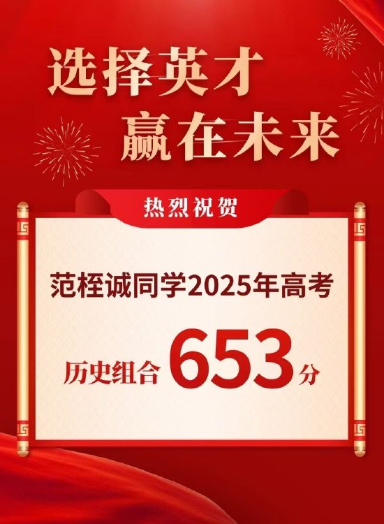 绵阳中学英才学校范同学 高考四川省历史类总分653分