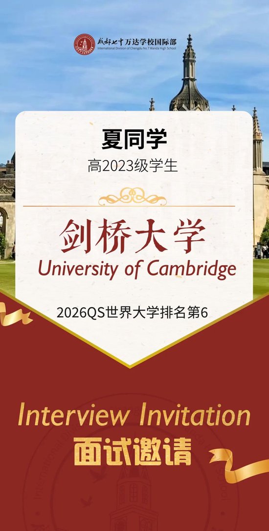 剑桥面邀+1!这位学霸来自成都七中万达学校国际部