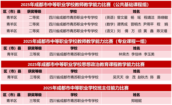 2025成都中职教师赛事收官 青苏教师揽获六项佳绩