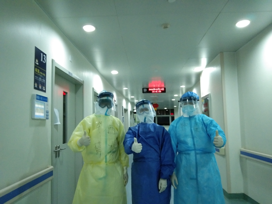 到达武汉驻地,经过简短的培训,随即投入临床救治工作中。工作是繁忙的,医务人员三班倒,下了夜班就赶紧睡觉;为了节约防护物资,也为了减少穿脱防护服带来的感染风险,在工作期间需要尽量少喝水,减少上洗手间和穿脱防护服的次数;长时间穿带防护服,经常闷热难耐,护士老师的皮肤经常被磨破,甚至有队员因闷热而差点晕厥。在下班休息的时候,需要各自对房间、个人物品的消毒,需要清洗工作服,需要搬运生活物资……。虽然医疗队面临方方面面的困难,但是队员们一直都精神饱满,乐观向上。驻地的武汉工作人员给予了极大的帮助,让我们很快的适应了当地的生活;华西医院的娘家人们生怕我们受了委屈,像置办嫁妆一样,源源不断的送来各种物资。困难一一克服,工作和生活渐上正轨,而我也从一名心脏专科医生,逐渐适应了在防护和隔离的环境下开展抗击新冠肺炎的临床工作。工作繁忙而单调,下班后需要各自隔离,同事朋友间也相互不见面不串门,亲友们不时传来问候,更多的时间还是在工作群上讨论患者的病情变化和工作流程的改进。成都的娃子,难见下雪,来武汉的第一周就遇到降温,一夜间整个院区白了头,小伙伴们兴奋得很,上班路上照雪景的同时,也不忘写下“武汉加油”!也许这是川人天性的乐观,也许是在一次次灾难洗礼后,在艰苦环境中铸就的坚毅。经历过汶川地震、芦山地震,四川医务工作者更懂得擦干泪水,负重前行的含义。
