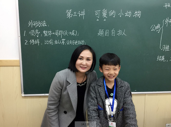 “老师那节课讲的是怎么写小动物,她讲得很生动,把每一个细节都讲述得很清楚,让我懂得了怎么去观察动物,描写它们的动作过程。”已经在名师堂学习过的缪宇向记者娓娓道来。谈及对老师有何建议,这个有些呆萌的孩子说:“已经很好了,不知道该怎么给建议了。”