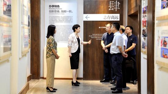 刘副市长一行非常关心师生的生活,深入学生公寓仔细查看了学生盥洗室、床铺、消防设施,并详细了解了住校生管理情况;在学生食堂,刘副市长一行询问了师生用餐、食堂管理等细节,并深入操作间、留样间仔细查看。刘副市长强调,要严格落实食品安全工作,并指示随行工作人员要请食品药品安全管理局按期做好相关指导工作;在校史馆,刘副市长称赞道:“中和中学如此注重校园文化建设,难能可贵!”她同时指出,一所有底蕴的学校应该做好校史梳理工作,校史馆建设是学校文化的重要方面,应纳入学生入学教育“第一课”,能增强师生和家长对学校的文化认同感。
