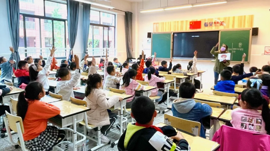 刘思莹老师:对于大多数同学来说,虽然这是第一次如此jin距离地与外国人接触,但是在课堂上,他们依然能快速进入状态,自然、大方地与外教老师交流。就是这些简单的单词和短语、热情的笑容和互动,立即将他们之间的距离拉jin了。一堂课的时间,孩子们和外教老师已经成为了好朋友,下课后,孩子们依依不舍地围了上去,又已经开始期待下一次见面了!
