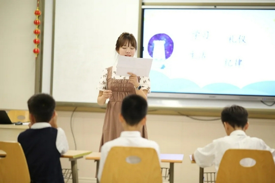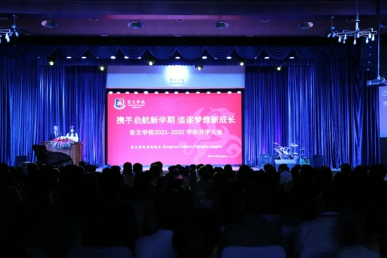 宏文学校总校长任国芳致辞,她表示:宏文学校认真落实“立德树人 ” 践行“五育并举”的教育理念,秉承“勤奋治学、仁爱友善、慎独律己、坚毅勇敢、惟新追求”的宏文学校校训,培养全面发展的社会主义建设者和接班人。新学期里,学校将开展一系列丰富多彩的校园活动,比如:中秋传统文化节、科技节、艺术节、篮球赛、英语词汇三校联赛……开设更多ECA课程,提升同学们的综合能力。