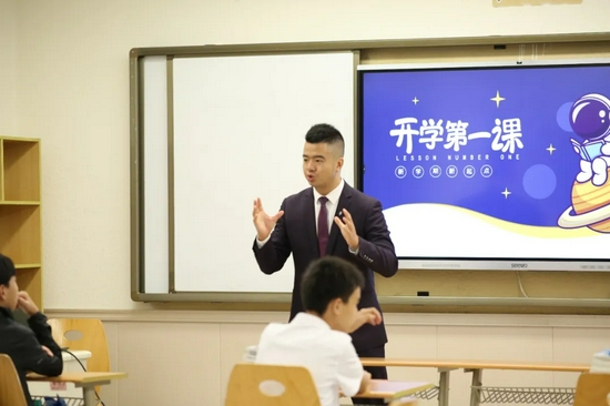 杨老师从疫情防控、抗洪救灾、2020东京奥运会、天问一号成功着陆火星、“祝融号”火星车成功驶上火星表面等内容为学生们进行讲解,引导学生树立正确的价值观和人生观,帮助学生“扣好人生第一粒扣子”,在老师和学生的互动下,学生们对新学期有了新目标、新期待。