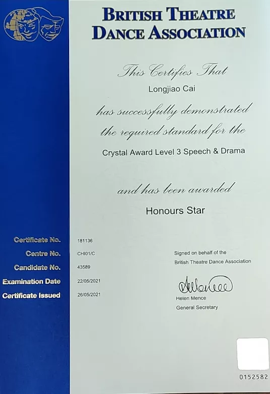 英语演讲与戏剧等级考试,是英国戏剧舞蹈协会(British Theatre Dance Association,BTDA)面向全球提供的,以演讲、表演、戏剧、表达 为手段,集英语素质教育和能力考试为一体的国际化“英语 + 专项能力”等级认证考试体系。BTDA 面向所有英语演讲与戏剧爱好者,提供一系列的认证考试与奖励,以表彰个人的成就。2020 年开始,BTDA 首次在中国推动在线英文演讲与戏剧能力认证。