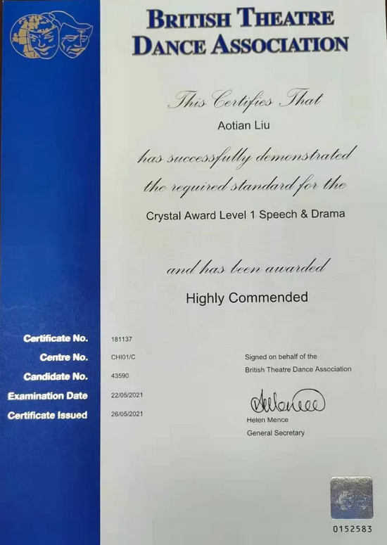 英国戏剧舞蹈协会英语演讲与戏剧认证等级考试