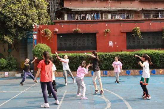 操场上是一派热闹的景象!篮球班的孩子在老师的带领下,整齐地排好队伍,开始了热身训练!