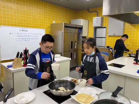厨艺课在初中和国高开设,初中属于技术选修和社团,所有孩子都要学会做32道菜,包括馒头、花卷、米饭、蛋糕等。初中选修课在选课时,厨艺课受到同学们的热捧,两秒就被抢完。国高厨艺课属于必修,每周一次;初中的学生,选修课也是一周一次。选修课和必修课的课程主要包括川菜类、西餐类、西点类等,社团课是单独的西点烘焙社团和小吃社团。
