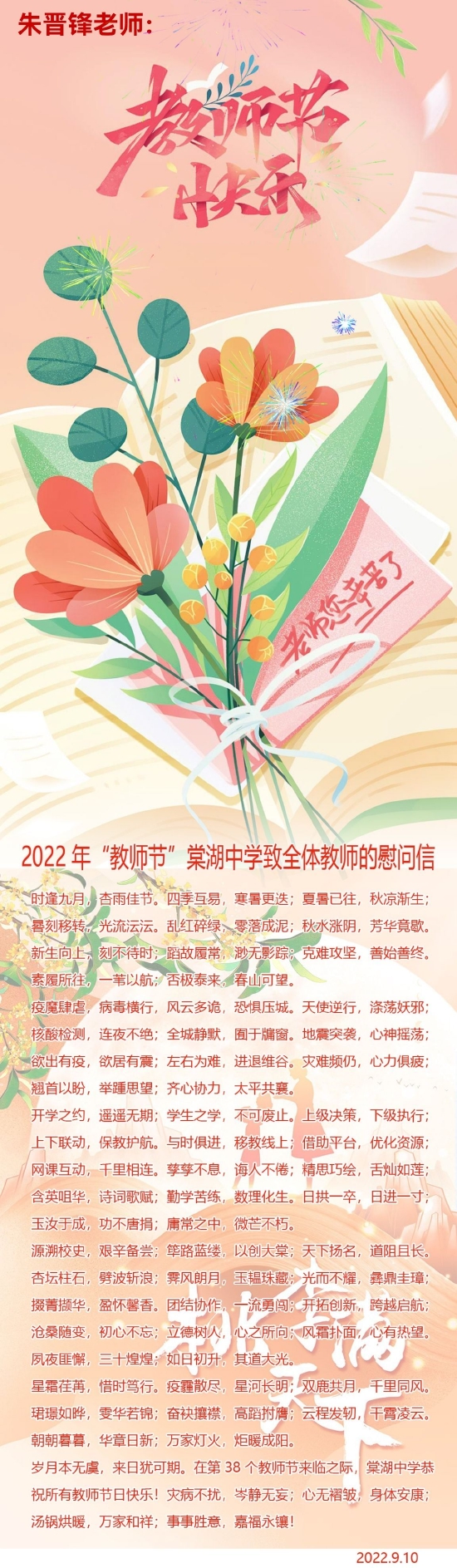 2022 年“教师节”棠湖中学致全体教师的慰问信