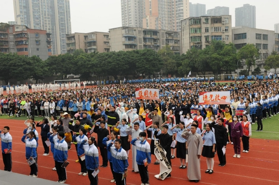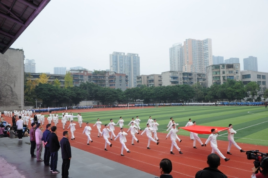 国家一级游泳运动员,四川省十四届运动会四枚金牌获得者,高三5班李培彦同学,代表全体运动员宣誓。他表示,在比赛中,将会服从领导、服从指挥、,遵守规则、遵守纪律、尊重裁判、尊重选手,勇于拼搏,赛出风格和水平。