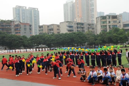 学校全体领导和茶店子、黄忠校区的全体师生参加了本次开幕式,开幕式由体育老师胡晋主持。