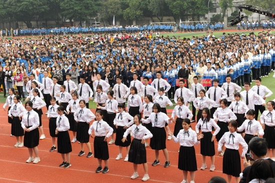 初高中分年级分班方阵入场,同学们带着满腔的热情与活力,伴随着激昂的音乐,踏着整齐与矫健的步伐,依次入场。