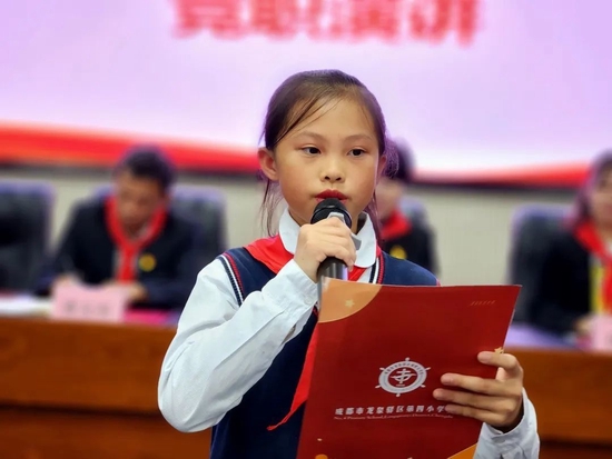 龙泉驿区第四小学校党总支书记、少工委主任吴天书校长为大会致辞。