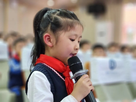 少先队员代表5.5中队鄢姿萌发表参加少代会感言。