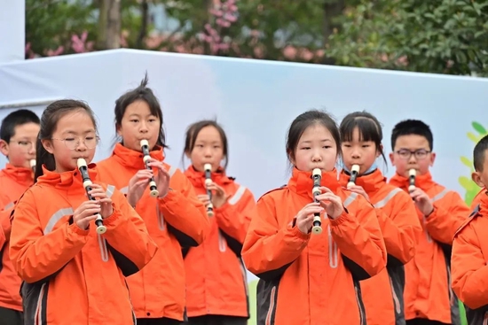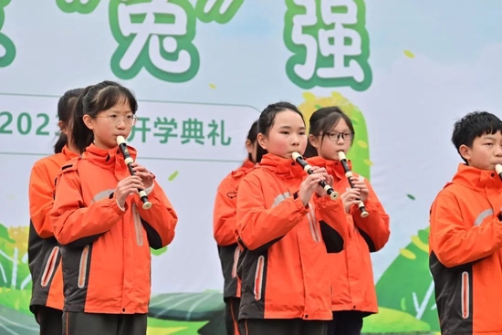 悠扬动听的旋律,就像春风拂面,拨动着我们的心弦,优美动听的音乐,就像阳光和雨露,滋润着我们的心田,在悠扬的竖笛声中我们挥别过去,拥抱春天!