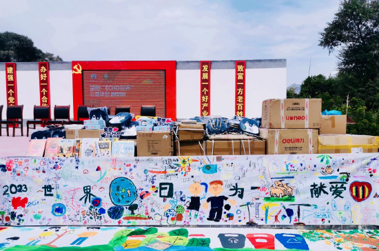 繁懋公益小队为河东乡的生态环保超市和孩子们,捐赠了绘本、书包、文具等爱心物资,并展示了公益活动期间繁懋旗下各个园区幼儿创作的生态保护画作。这些画作既是繁懋公益的见证,也是孩子们无限爱心的凝聚,更是一份长久的感动。