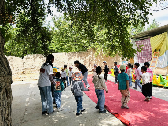 质朴的土墙内,茂盛的柳树下,炽烈的阳光中,小小的教室内,充满了老师和孩子们的欢笑。