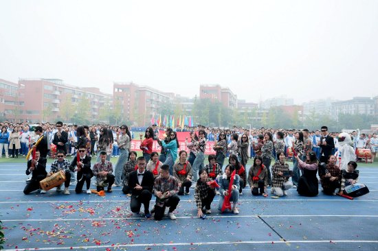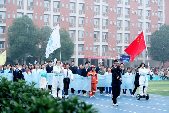 航空载人火箭、和谐号高铁等科技元素集结,唱响时代奏鸣曲,展现祖国发展日新月异,振奋人心的时代秀激励新城学子拳拳上进之心;形形色色的职业cosplay大放异彩,致敬各行各业劳动者的同时,也秀出学子们对未来人生的设想与憧憬。