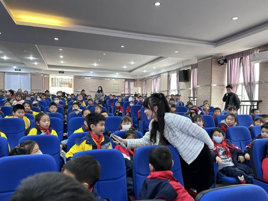 12月9日,由成都市沙河堡小学主办的 2023 成都市中小学生成长讲座(第二讲)在多功能厅正式开讲,活动以“笑对挫折,挑战自我”为主题。学校邀请到了二年级六班杜嘉馨的妈妈付老师作为开讲嘉宾,她是一名优秀的教育工作者,有着丰富的教育经验和儿童心理学知识。付老师根据低段小朋友的身心特点,设计了丰富的活动,寓教于乐,带领孩子们开启了一场绘本之旅。