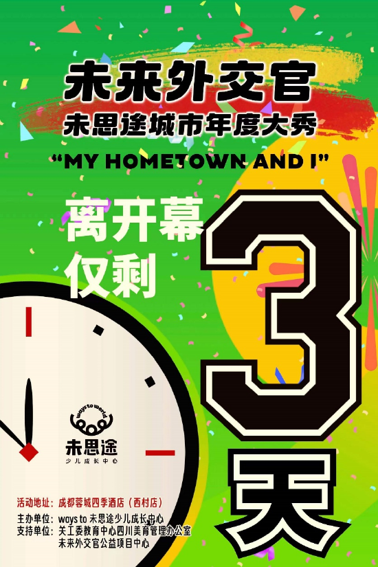 历时三个月、上万人报名,12月24日,由未思途少儿成长中心举办的“未来外交官”城市年度大秀将在成都拉开战幕。这是一场英文演讲的盛典,从上万名学员中脱颖而出的80名优秀选手,将在现场角逐最后10个席位,为活动画下圆满句号。