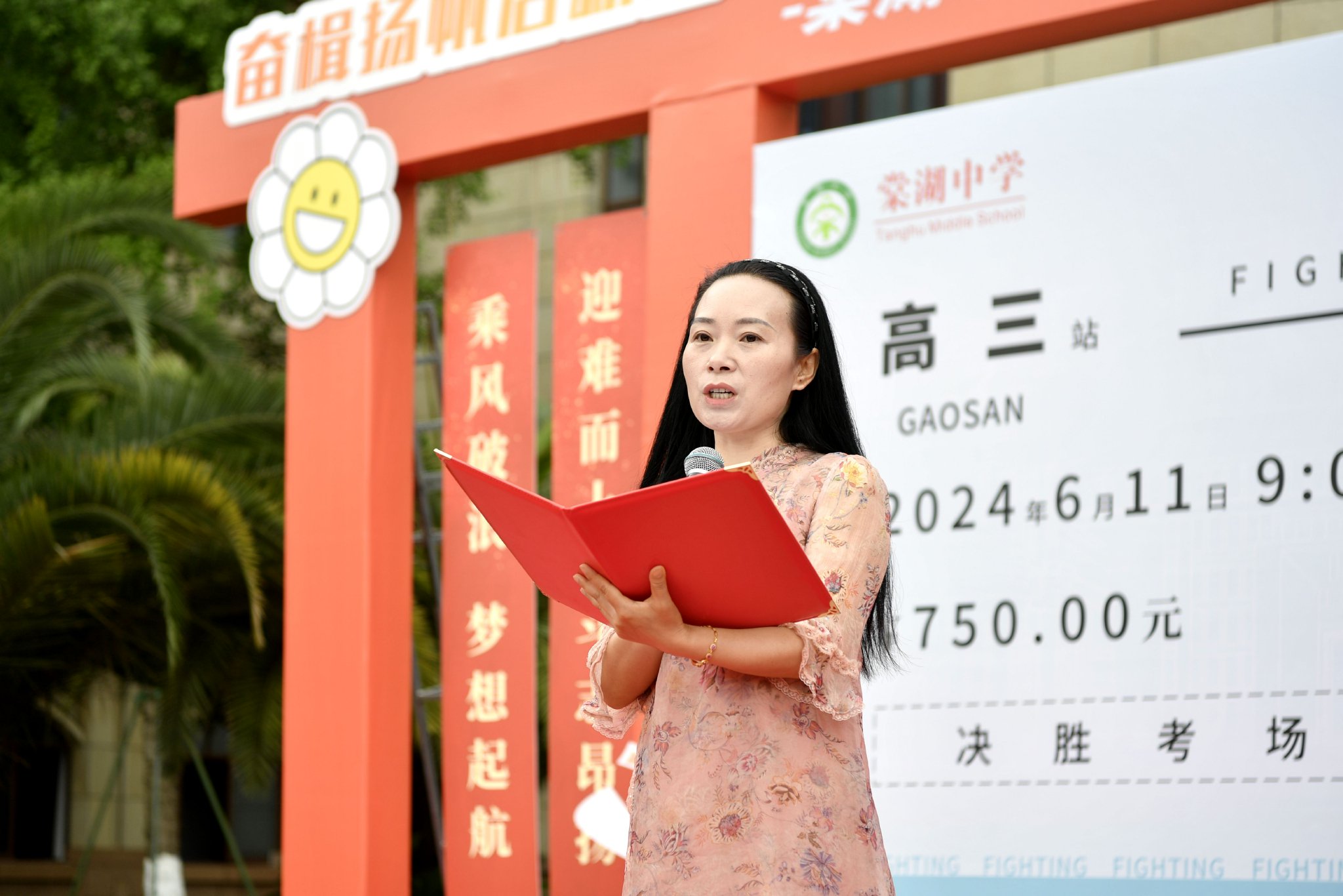 仪式上,棠湖中学副校长陈玲发表致辞,她要求同学们在高三这一年里,首先要充满“热气”,积极向前,不畏艰难,以饱满的热情迎接每一天的学习和生活;其次,同学们要有志气,坚定信念,明确目标,为了心中的理想大学而奋斗。