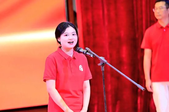 今年刚刚研究生毕业的成娅老师代表全体新教师发言。她在发言中表示,路漫漫其修远兮,吾将上下而求索。在未来的教育道路上,年轻教师将不忘初心、牢记使命,虚心向各位前辈请教,不断反思总结自己的教学实践经验,努力提升教育教学水平,努力成长为一名优秀的教师。