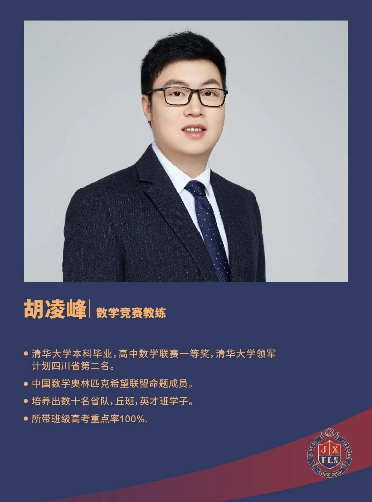 短短几年,胡凌峰在教学道路上收获颇丰,取得了耀眼的成绩。截至目前,已参与培养出了二十余位省队学子,十余位清华丘班、北大英才班学子;他还多次参与中国数学奥林匹克希望联盟等赛事的命题工作,中国东南数学奥林匹克等赛事的阅卷工作;在学校成为锦江区拔尖创新人才培养基地校后,他积极投身其中,担任基地校数学学科组组长,希望为更多学生提供学业的优质资源和机会。