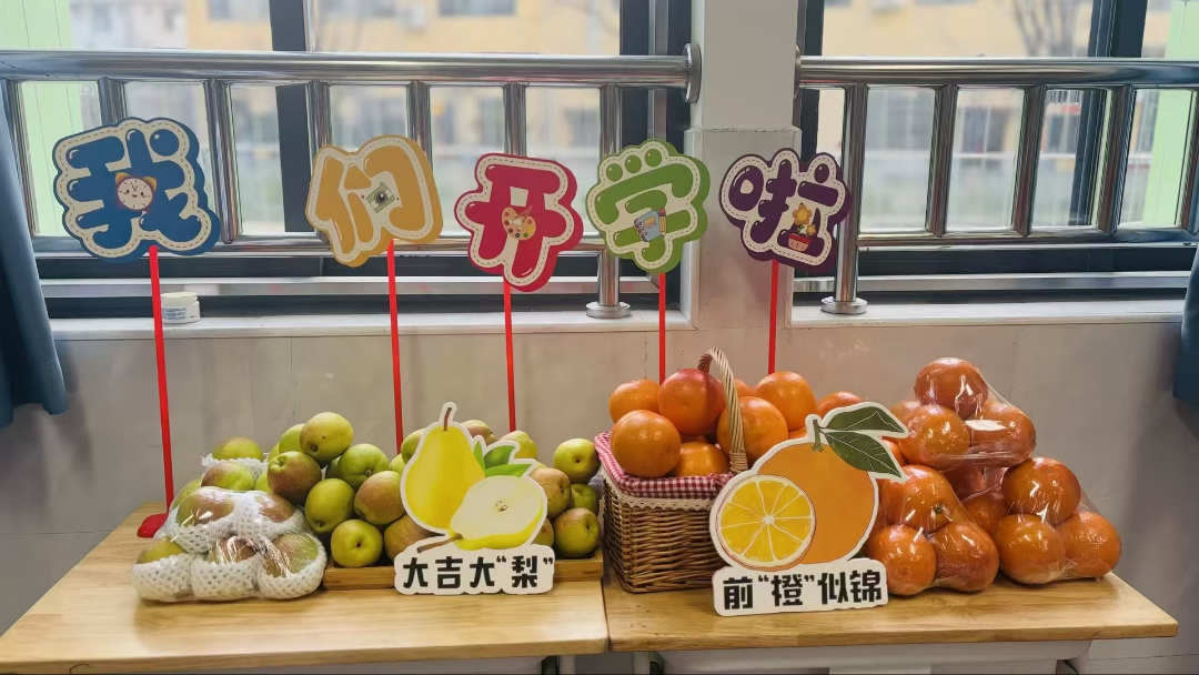 此外,学校还精心准备了一些寓意超好的水果。前“橙”似锦,大吉大“梨”……这些水果不仅是美味的馈赠,更是老师们对学生深深的祝福,希望他们在新的学期里健康成长,学业进步。