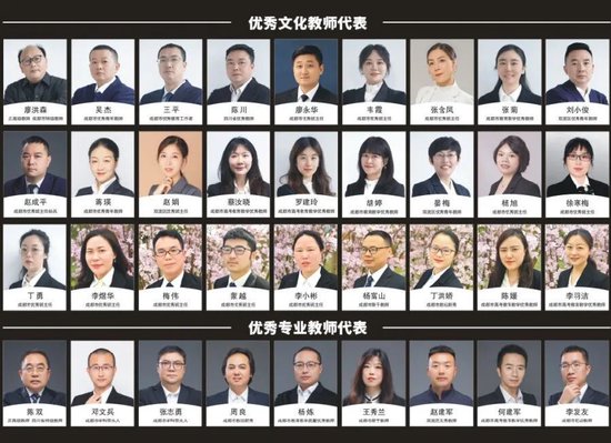 学校立足特色,不断优化教师队伍结构,组建了四川省普通高中规模最大的艺体教师队伍。全校现有教职工443人,其中正高级教师2人,特级教师2人,文化教师298人,音体美专业教师139人,中小学高级教师和一级教师228人,300人获得省市区优秀教师荣誉称号。