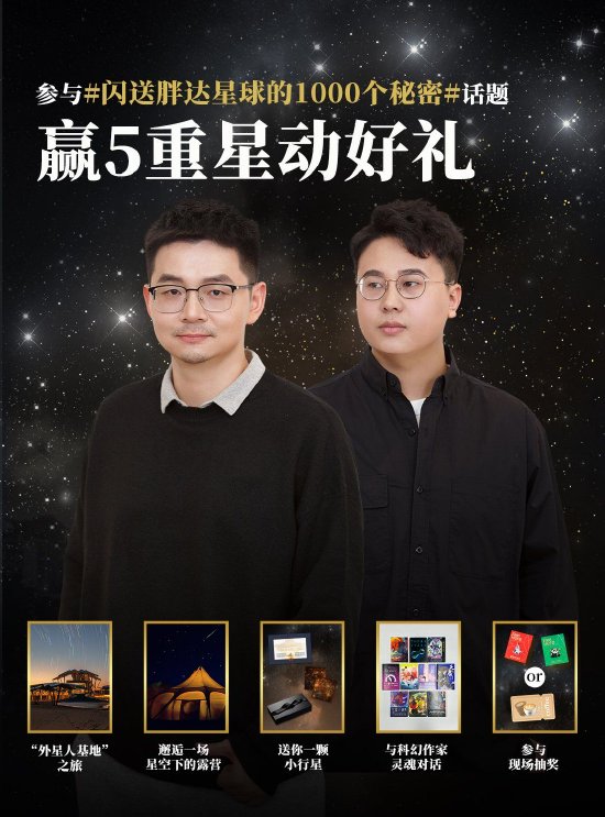 随着“胖达银河计划”的启动,成都IFS携手成都创新科幻出版品牌八光分文化邀请到曾多次荣获全球华语科幻星云奖以及银河奖的著名科幻作家阿缺以及雨果奖获奖作品《时空画师》责任编辑罗夏在线与大家分享科幻创意,共探宇宙奇妙。此外,公众还可以参与“胖达银河计划”线上话题互动,写出自己想对宇宙星空分享的秘密。优质分享不仅有机会获得阿缺或罗夏的点评,与科幻作家来一次灵魂上的高级对话,还有机会赢得包括“外星人基地”之旅以及“命名一颗专属小行星”在内的超级大奖,使胖达星球的旅途因文字生辉,因惊喜延绵,带来可以持续整个冬日的快乐。
