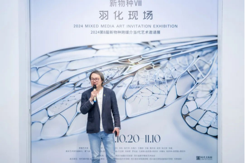 本届展览以 ‘羽化’ 为主题。在这里,我们可以看到绘画、雕塑、装置、影像等多种艺术形式的完美融合,感受到艺术家们对生活、对社会的深刻思考和独特表达。最后,预祝第八届‘新物种:羽化现场跨媒介当代艺术邀请展’取得圆满成功,希望所有参与此次展览的朋友们能够收获灵感,享受艺术带来的美好。”