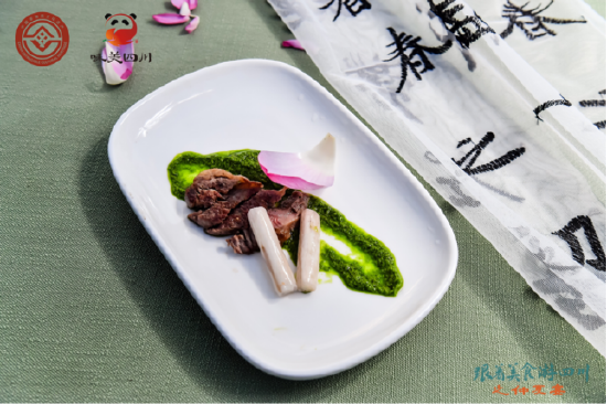 本次仲夏宴汲取了宋代风雅意境“荔枝乡里玲珑雪,荷花香里拆冰丸”的美学灵感,巧妙融合了四川盛夏最具代表性的“水之荷荔”与“山之竹菌”,匠心呈现了“荷荔生辉”主题宴席。非遗美食传承人倾力打造,为来宾献上了一场视觉与味觉的双重飨宴,尽享四川夏日的丰饶。