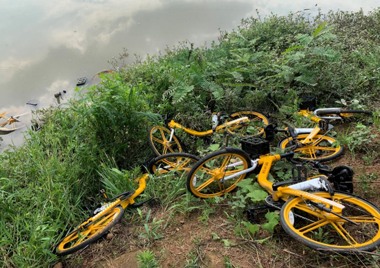 近期,美团单车的工作人员通过后台大数据发现部分车辆出现数据异常,在没有被正常开锁骑行的情况下,被异常移动到了锦和路。“我们今天(23日)中午到的这里,发现这些异常移动的车辆都被扔在河道边上,有的散落在河道斜坡上,有的还被扔在了河里,从中午11点半打捞到了下午6点,河里面的车特别难打捞,到目前为止已经打捞了70多辆单车,预计明天能把94辆被丢弃在这里的车全部打捞完毕。”美团单车工作人员表示。