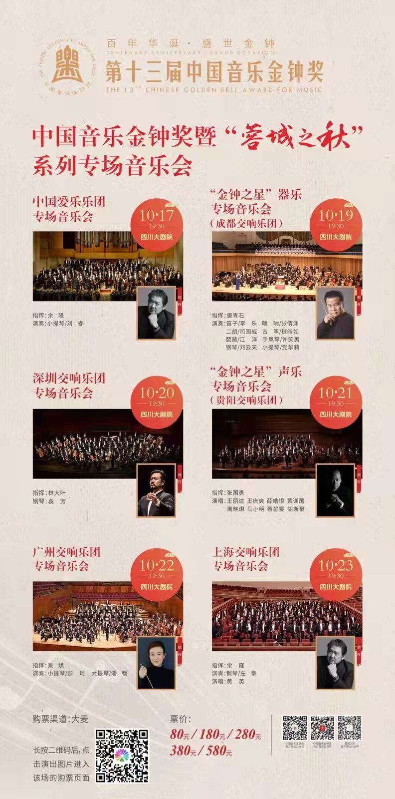 中国音乐金钟奖10月16日成都开幕 推出6套专场音乐会和44场比赛门票