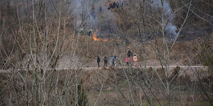 2月3日下午4时许,四川省S413公路盐亭龙门娅段附近一片荒坡正在燃烧,附近有山林。澎湃新闻在现场看到,消防队员和村民都在火场里灭火,好在荒坡上下方均被公路切割,灭火人员集中在左右两个方向扑打,火势很快得到控制。消防队员和当地村干部一起将火扑灭。