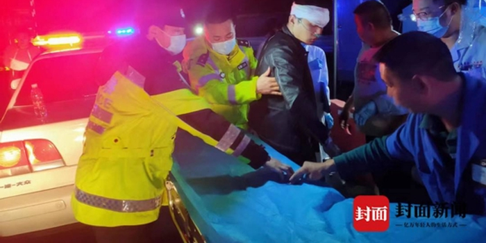 四川高速公安三分局二十二大队值班民警十分钟后赶到现场,简单询问得知,躺在地上的伤者竟然是被一掉落的货车轮胎撞伤的。更让人难以置信的是,撞伤他的就是他自己驾驶的货车脱落的轮胎。民警见伤者额头血流不止,立即将其转移至附近收费站疫情防控点,由防控点医疗人员对伤者出血部位进行了简单包扎。随后,120救护车赶到伤者所在收费站将其接至医院进行治疗。