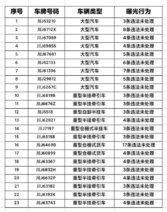 关注为加大对道路交通违法行为的高压严管态势,营造安全、畅通、有序的道路通行环境,遂宁市公安局交通管理支队持续开展“五大曝光”行动,现将2025年9月份曝光内容公布如下: