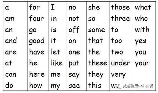 在自然拼读法学习之前,能掌握其中最常用的40个高频词是非常好的起点,剩下的可以在学习自然拼读法的过程中并行学习。