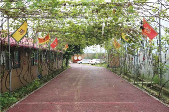 农场内绿意盎然,景致优美,随处可见各种三国文化元素:三国军旗、三国主题壁画、三国英雄酒……廊下漫步,临池垂钓,下地摘菜,体验农耕,这里的田园生活让人乐不思蜀。