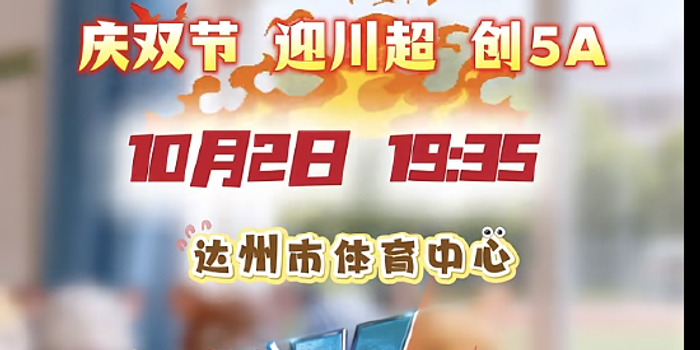 关注金秋十月,激情飞扬!10月2日晚上19:35,“川超”达州VS成都赛事将在达州市体育中心举行。为保障各位球迷朋友们的观赛体验,确保活动安全、有序、圆满进行,达州文旅特向您发出如下温馨提示: