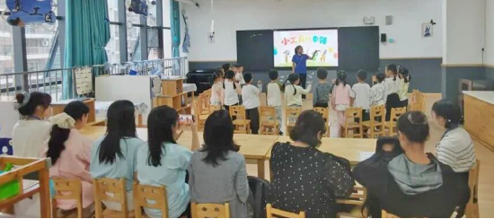 随后,跟岗教师观摩了幼儿园吕老师带来的绘本故事课《小工具本领大》。课堂上,吕老师以生动有趣的语言引导幼儿认识各类工具的名称与用途,通过互动提问、情景模拟等方式,充分调动幼儿的积极性与参与度,让幼儿在轻松愉悦的氛围中感受小工具的“大本领”,展现了扎实的教学功底与丰富的课堂组织经验。