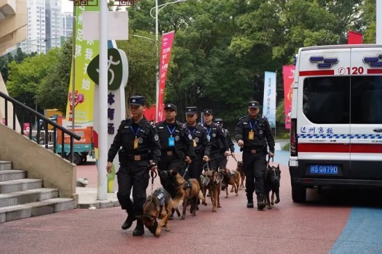 为保障赛事顺利,市公安局党委提前周密部署,市区县警力联动,群防群治力量协同,从前线执勤到后方指挥无缝呼应。赛场内外,一幕幕“警”彩守护同步上演:看台内,民辅警背对球场面向人群,在4个反向观察点疏导人流、引导出入,严防拥挤踩踏;场馆外,“固定岗+流动岗”全天巡逻,7只警犬在关键区域嗅查安检,织密外围安全网;周边路口,“荧光绿”交警全程疏导车流,保障赛前入场、赛后散场有序高效;甚至在观赛间隙,民警还设点开展反诈宣传,将安全守护延伸到每一个细节。