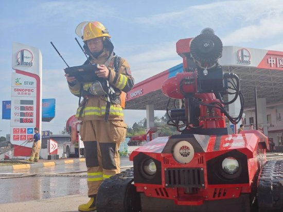接到救援指令后,中国石化中原油田普光分公司应急救援中心迅速出动泡沫消防车、18吨消防车等2台救援车辆及10名指战员赶赴现场。救援队伍运用消防机器人进行火情侦查,高效完成警戒疏散、灭火攻坚和伤员救治等环节,成功扑灭“火灾”,并协助被困人员安全撤离。